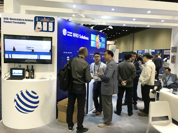 同時,結(jié)合產(chǎn)品的實際應(yīng)用場景,展臺也進行了案例演示。觀眾對我司卓越穩(wěn)定的產(chǎn)品性能和綜合應(yīng)用解決方案有了全方位的了解。在跨境商品防偽溯源領(lǐng)域,我司展示了將PUF(物理不可克隆)防偽功能的RFID標簽與區(qū)塊鏈結(jié)合的創(chuàng)新方案。參觀者在現(xiàn)場通過NFC手機掃描貼在產(chǎn)自加州納帕谷酒莊的紅酒上的RFID標簽,就能接收到該酒的認證信息,了解該酒的特點及完整的物流信息。據(jù)悉,這是全球首例將RFID與區(qū)塊鏈結(jié)合應(yīng)用于跨境商品流通的真實案例。