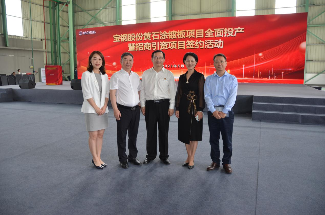 董事長劉國民和寶鋼股份黃石涂鍍板有限公司總經理助理兼制造部部長劉浩洲(左三)